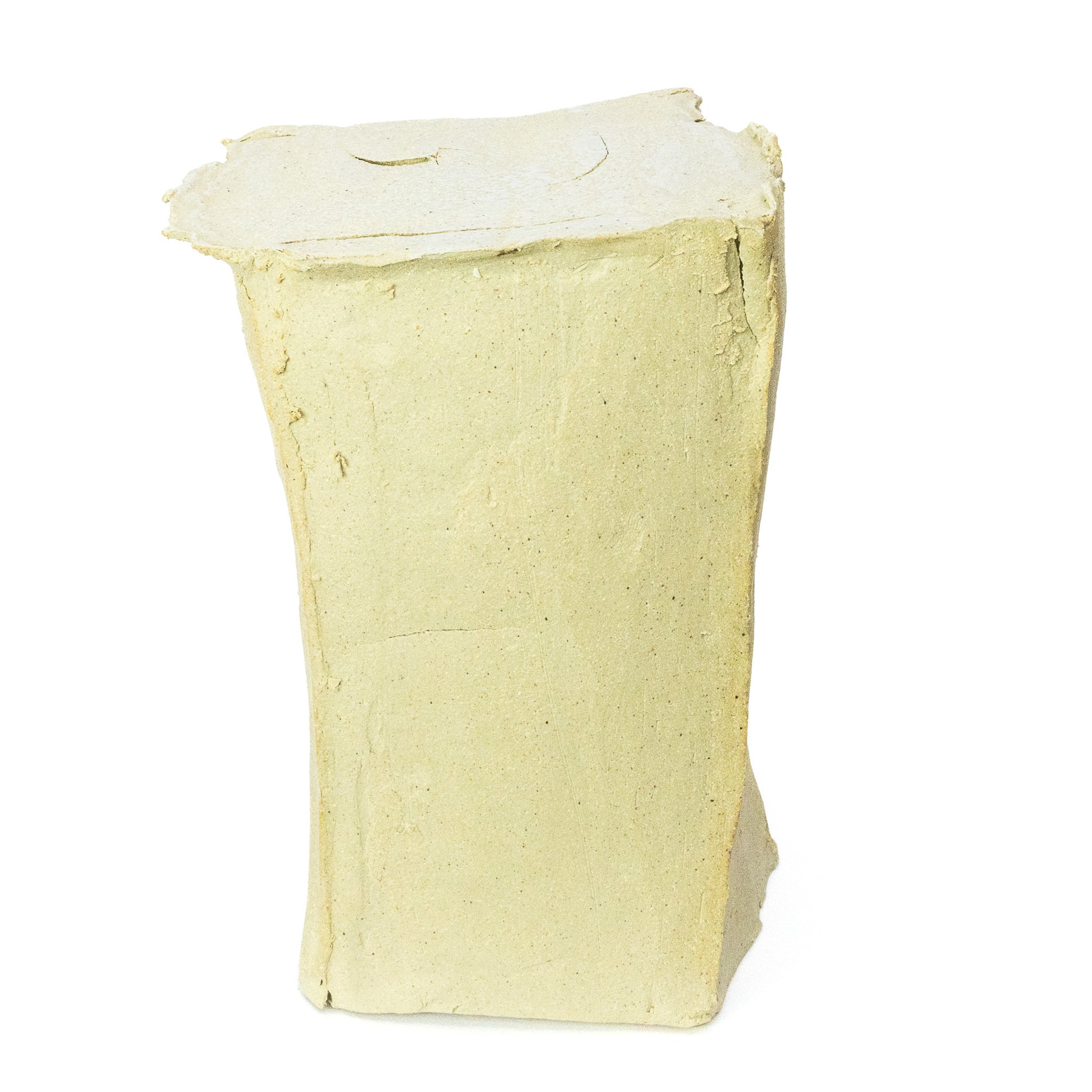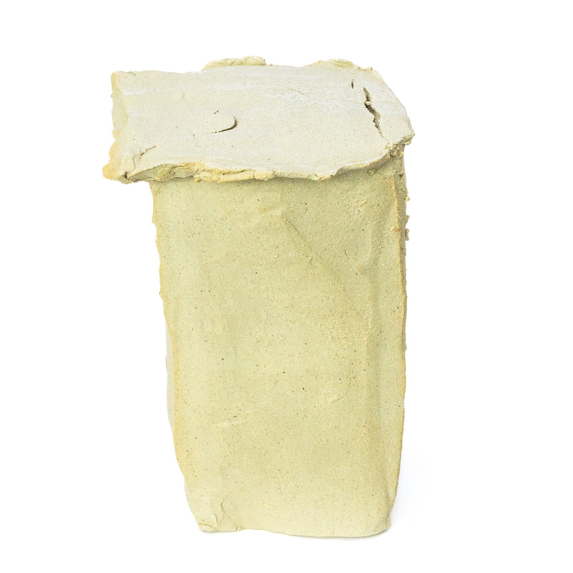 FAE SPIRIT 2 IS A RECTANGULAR CERAMIC SCULPTURE AND FEATURES A ROUGH SANDY SURFACE WITH CRACKS, TEXTURE, AND TOASTED EDGES.