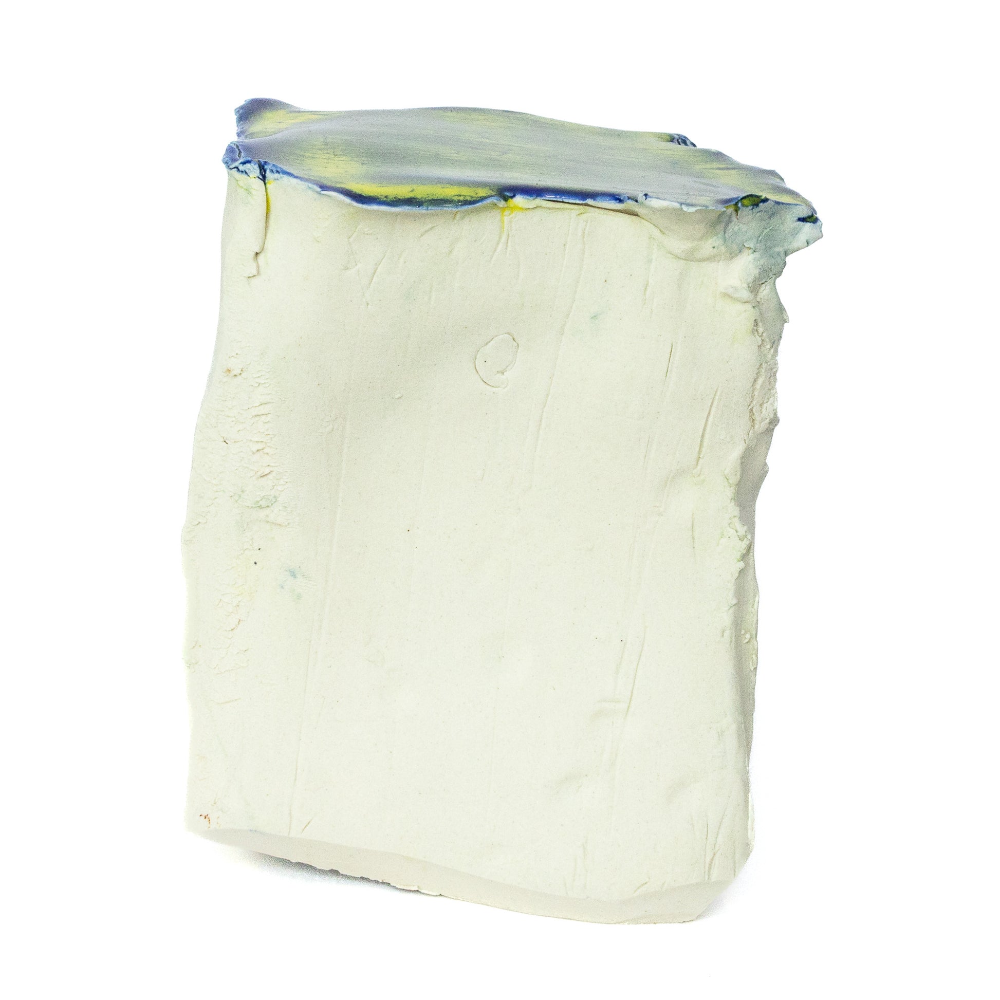 FAE SPIRIT 4 ULTRA YELLOW BLUE IS A RECTANGULAR CERAMIC SCULPTURE AND FEATURES A POLISHED YELLOW BLUE TOP AND RAW PORCELAIN SIDES